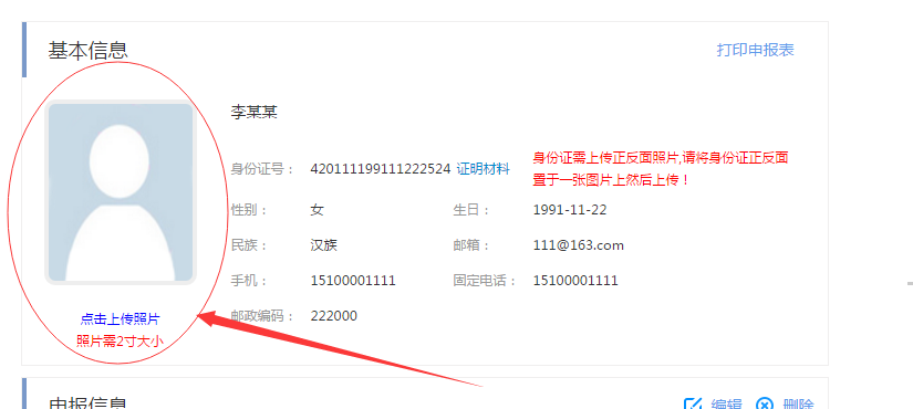 刷新后拖動(dòng)到學(xué)歷信息部分,可見新增的學(xué)歷信息如下顯示,點(diǎn)擊如圖1.2.2.5中的【修改】按鈕可修改學(xué)歷信息,點(diǎn)擊【刪除】可刪除當(dāng)前學(xué)歷信息,點(diǎn)擊【證明材料】上傳學(xué)歷證明材料。