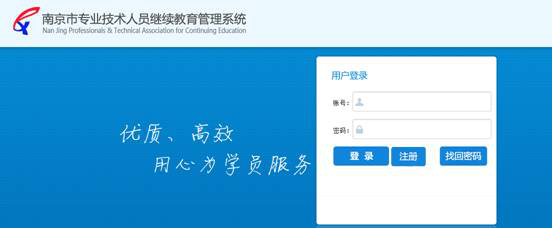 第二步:在“南京市專業(yè)技術(shù)人員繼續(xù)教育管理系統(tǒng)”登錄首頁,輸入帳號及密碼,點(diǎn)擊“登錄”按鈕登錄系統(tǒng)。