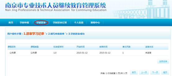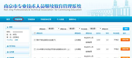 第四步:在“南京市專業(yè)技術(shù)人員繼續(xù)教育管理系統(tǒng)”,點(diǎn)擊“學(xué)時申報”。